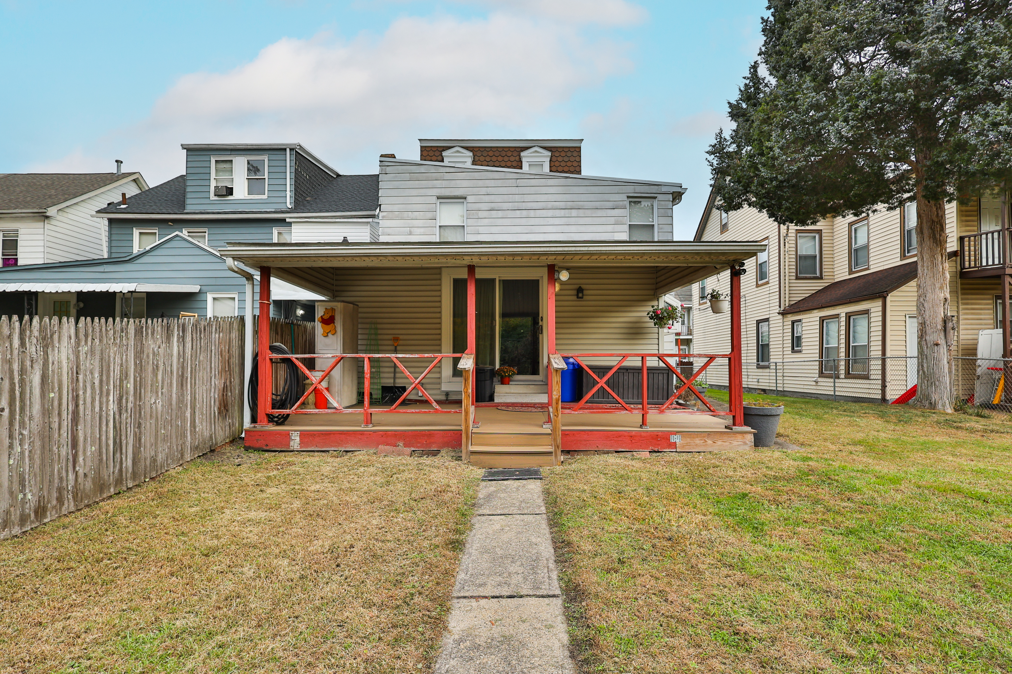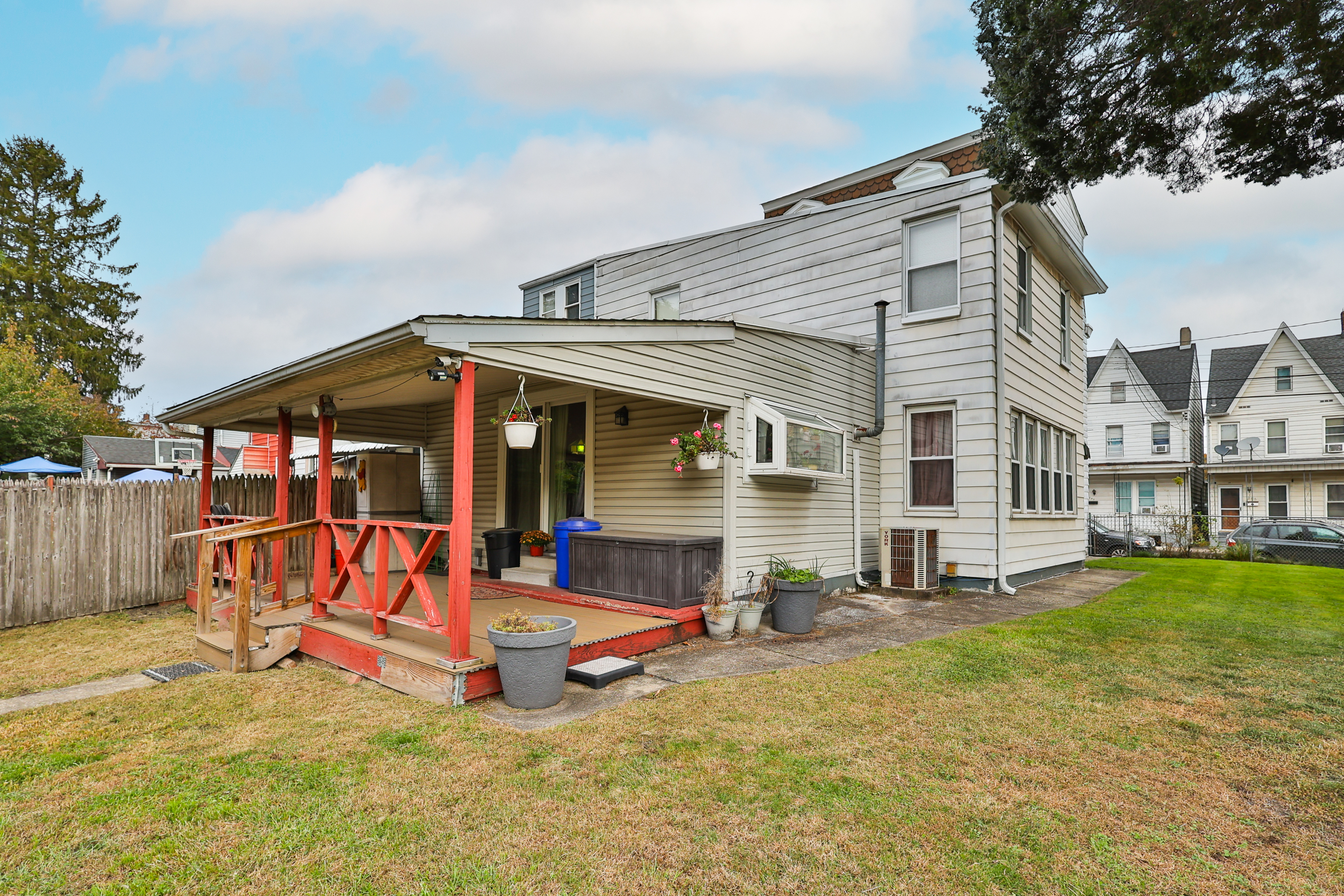 Don?t miss this one!  Stately, single detached, colonial home with large, fenced yard and private, off-street, paved parking lot for 3 cars.  Storybook 20? x 8? covered back deck overlooking yard is ready for your rocking chair & picnic table to enjoy the great outdoors.  Home features over 2,200 square feet of living space with large rooms, and sits on .14 acres. First floor has central air and includes eat-in kitchen with stainless appliances, laundry, dining room with French doors, living room, family room with door to side yard, full bath, and a bonus room to use as you wish ? first floor bedroom or office or storage.  Grand wooden staircase leads to second floor featuring full bath, large and updated primary suite with sitting room/exercise room and ceiling fan, and two other large bedrooms. Third floor features three additional rooms to use as bedrooms, storage, office - - possibilities are endless.  Basement houses heating system and extra space for storage. Gas heat, two zone heating, central air on 1st floor, ceiling fans, and security system.  Five-year-old roof with warranty.  Commuter convenience with easy access to I78 & RT 22.  See it TODAY!  Home being sold AS IS.  Floor plans, disclosures & code report available online.